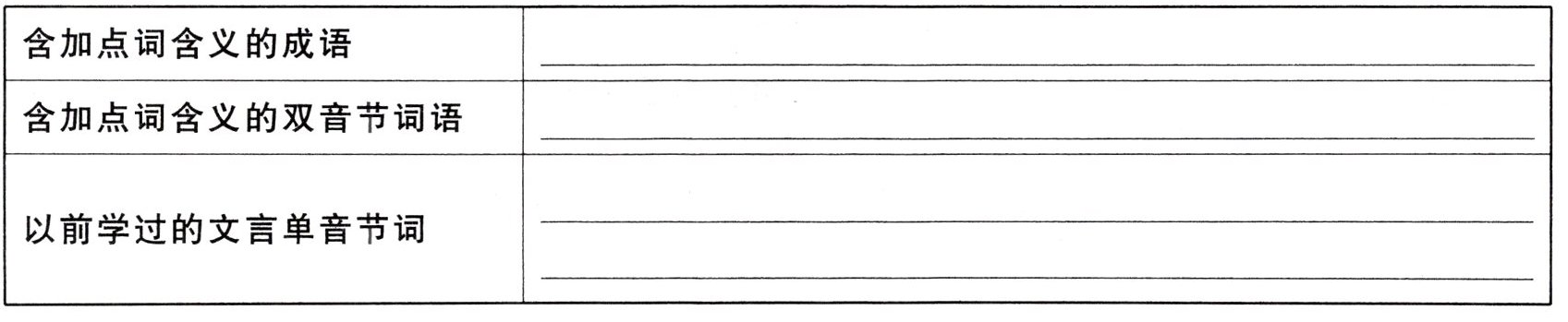4. 第二小组展示了他们搜集到的含上面加点词含义的成语、现代汉语双音节词语和以前学过的文言单音节词。