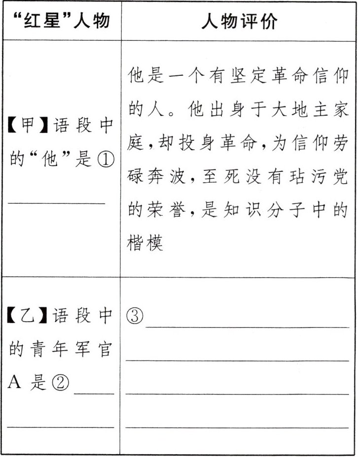(3) 请根据以上语段信息及阅读积累,完成“红星”人物信息表。(3分)