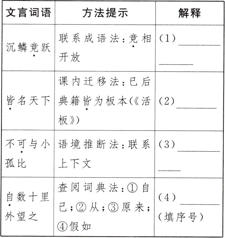11. 请参考方法提示,解释下列加点词语。(4分)