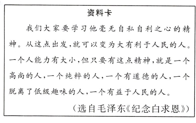 2. 小岩同学读完《红岩》后,认为其中许多人物都是《纪念白求恩》中说到的“大有利于人民的人”。请结合资料卡和与成岗相关的故事情节加以证明。