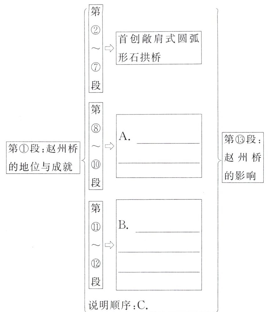 ⑬赵州桥是我国古代劳动人民智慧的结晶,为中国现代桥梁工程提供了历史参考。同时它的流传促进了世界桥梁建筑技术的发展,在世界桥梁史上留下了浓墨重彩的一笔。