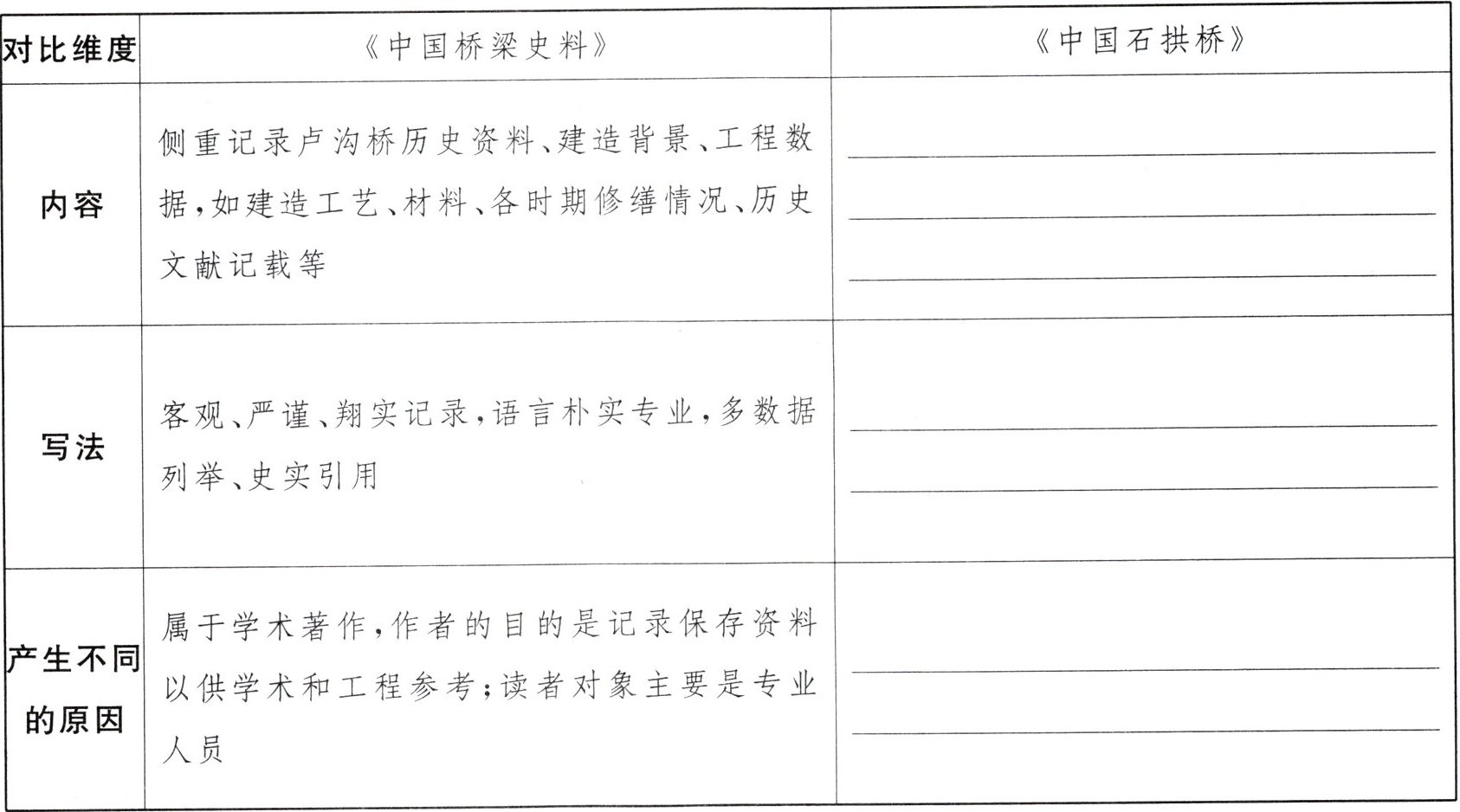 5. 阅读罗英《中国桥梁史料》中对卢沟桥的介绍,对比《中国石拱桥》中的相关内容,看看它们的内容与写法各有什么不同,简要分析产生这些不同的原因。