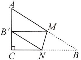 7. 如图,在△ABC 中,∠C = 90°,∠B = 34°,点 M,N 分别在边 AB,BC 上,将△BMN 沿 MN 折叠,使点 B 落在直线 AC 上的点 B'处。当△AB'M 为直角三角形时,∠BNM 的度数为