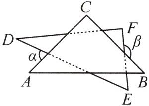 3. (2024·合肥 42 中期中)小明把一副含 45°,30°角的直角三角板按如图所示的方式摆放,其中∠C = ∠F = 90°,∠A = 45°,∠D = 30°,则∠α + ∠β = (