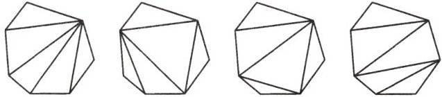 已知:把一个多边形用连接它的不相邻顶点的线段(这些线段不在多边形内部相交)划分为若干个三角形,叫作多边形的三角剖分。如图所示的是七边形的三角剖分的几种方法。