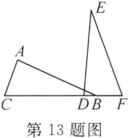 13. (2024·合肥蜀山区期末)如图,$\triangle ABC \cong \triangle DEF$,点$C$,$D$,$B$,$F$在同一条直线上,$AC = 3$,$EF = 5$,$CF = 7$,则$BD$的长为