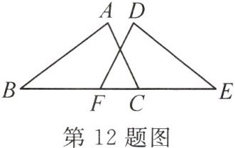 12. 茗茗用同种材料制成的金属框架如图所示,已知∠B = ∠E,AB = DE,BF = EC,△ABC 的周长为 24 cm,CF = 3 cm,则制成整个金属框架所需这种材料的长度为