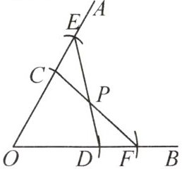 10. 如图,已知∠AOB,以点 O 为圆心,任意长为半径画弧,分别交 OA,OB 于点 C,D;再以点 O 为圆心,大于 OC 的长为半径画弧,分别交 OA,OB 于点 E,F;连接 CF,DE,CF 与 DE 相交于点 P,则下列结论错误的是(