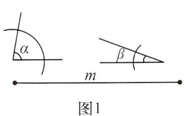 4. 如图1,已知$\angle \alpha$,$\angle \beta$,线段$m$,求作$\triangle ABC$,使$\angle A=\angle \alpha$,$\angle B=\angle \beta$,$AB = m$.