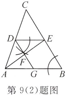 .(2)如图,已知$DE// AB$,观察尺规作图痕迹,若$\angle CED = 60^{\circ}$,则$\angle DGA=$