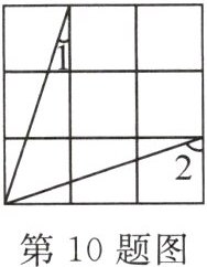 10. 如图,这是由边长相等的小正方形组成的网格,则$\angle 1+\angle 2=$