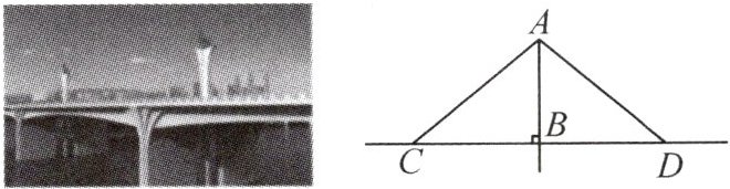 9. 位于高新区的火炬大桥是洛阳市区目前最靠西的一座跨洛河桥,也是洛阳市宽度最宽、承重能力最强、单孔跨度最大、配建立交规模最大的桥梁,其侧面示意图如图所示,其中$AB\perp CD$,现添加以下条件,仍不能判定$\triangle ABC\cong\triangle ABD$的是(