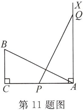 11. 如图,$\angle C = 90^{\circ}$,$AC = 10$,$BC = 5$,$AX\perp AC$,点$P$和点$Q$从点$A$出发,分别在线段$AC$和射线$AX$上运动,且$AB = PQ$,则当$AP$的长为