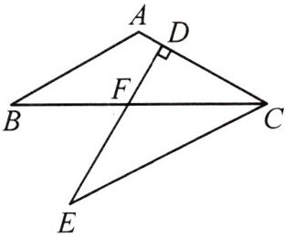 9. 如图,$CB$为$\angle ACE$的平分线,$F$是线段$CB$上一点,$CA = CF$,$\angle B = \angle E$,延长$EF$与线段$AC$相交于点$D$。