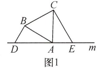 5. 石家庄外国语校本经典题 在直线m上依次取互不重合的三个点D,A,E,在直线m上方有AB=AC,且满足∠BDA=∠AEC=∠BAC=α。