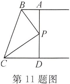 11. 如图,AB//CD,BP和CP分别平分∠ABC和∠DCB,AD过点P,且与AB垂直.若AD=8,则点P到BC的距离是(