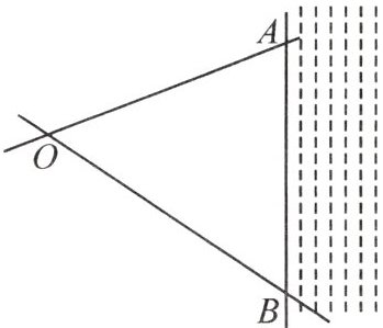 13. 新考向 真实情境 如图,铁路$OA$和铁路$OB$相交于点$O$处,河道$AB$与铁路分别相交于点$A$处和点$B$处。若在河岸上建一座水厂$M$,要求$M$到铁路$OA$,$OB$的距离相等,则该水厂$M$应建在图中的什么位置?请在图中标出点$M$的位置。