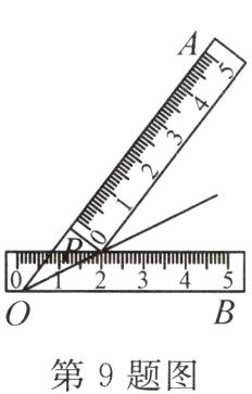 9. 小明同学在学习了全等三角形的相关知识后发现,只用两把完全相同的长方形直尺就可以作出一个角的平分线。如图,一把直尺压住射线$OB$,另一把直尺压住射线$OA$并且与第一把直尺相交于点$P$,小明说:“射线$OP$就是$\angle BOA$的平分线。”他这样做的依据是(