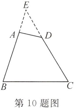 10. 如图,在四边形$ABCD$中,$AB = CD$,$BA$和$CD$的延长线相交于点$E$。若存在点$P$,使得$S_{\triangle PAB}=S_{\triangle PCD}$,则满足此条件的点$P$(