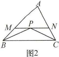 (2)如图2,过点P作直线交AB,AC于点M,N.仿照图1的方法,求证:AB+AC>PB+PC.