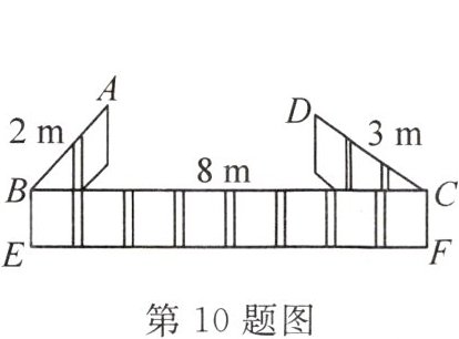 10. 新考向 真实情境 为方便劳动技术小组实践教学,需用篱笆围一块三角形空地,现已连接好三段篱笆AB,BC,CD,这三段篱笆的长度如图所示,其中篱笆AB,CD可分别绕轴BE和CF转动.若要围成一个三角形的空地,则在篱笆AB上接上新的篱笆的长度可以为 (