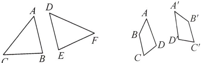 3. 如图,下列每组的两个图形成轴对称,请画出它们的对称轴.