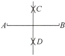 1. 如图,已知线段 $ AB = 6 $,利用无刻度的直尺和圆规作 $ AB $ 的垂直平分线,步骤如下:①分别以点 $ A $,$ B $ 为圆心,$ b $ 为半径作弧,两弧相交于点 $ C $,$ D $;②作直线 $ CD $,直线 $ CD $ 就是线段 $ AB $ 的垂直平分线.则 $ b $ 的值可能是(