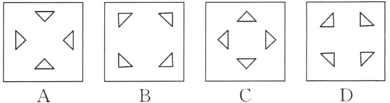 4. 把一张正方形纸片按图1、图2 的方式对折两次后,再按图3 的方式挖去一个三角形小孔,则展开后的图形是(