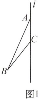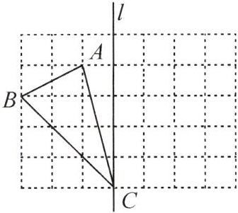 (1)在网格中画出与 $ \triangle ABC $ 关于直线 $ l $ 成轴对称的 $ \triangle A'B'C' $。