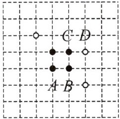 的位置,则所得的对弈图是轴对称图形。(填写 $ A $,$ B $,$ C $,$ D $ 中的一处即可,$ A $,$ B $,$ C $,$ D $ 位于棋盘的格点上)