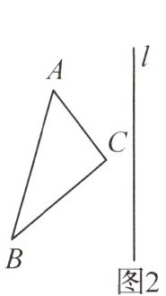 2. 在下列各图中画出 $ \triangle A'B'C' $,使 $ \triangle A'B'C' $ 与 $ \triangle ABC $ 关于直线 $ l $ 成轴对称。