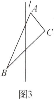 (3)在图3 中画一个 $ \triangle DEF $,使 $ \triangle DEF $ 与 $ \triangle ABC $ 关于某条直线对称,且 $ D $,$ E $,$ F $ 为格点。