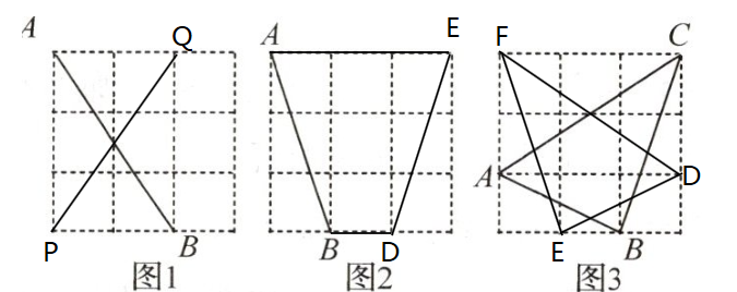 (1)在图1 中画一条不与 $ AB $ 重合的线段 $ PQ $,使 $ PQ $ 与 $ AB $ 关于某条直线对称,且 $ P $,$ Q $ 为格点。