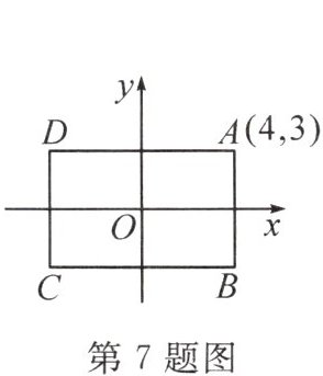7. (教材 P76 习题 T3 变式)如图,分别以长方形 $ ABCD $ 的两条对称轴为 $ x $ 轴和 $ y $ 轴建立平面直角坐标系.若点 $ A $ 的坐标为 $ (4,3) $,则长方形另外三个顶点的坐标分别为 $ B $