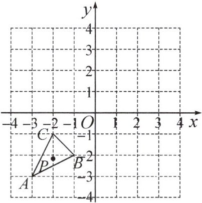 10. (2024·芜湖无为市期中)如图,在平面直角坐标系中, $ \triangle ABC $ 三个顶点的坐标分别是 $ A(-3,-3) $, $ B(-1,-2) $, $ C(-2,-1) $.