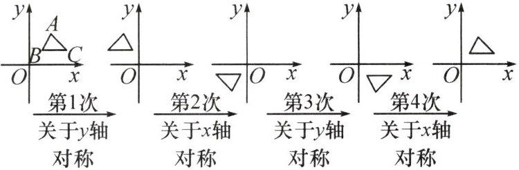 17. 新考向 推理能力 如图,在平面直角坐标系中,对 $ \triangle ABC $ 进行循环往复的轴对称变换.若原来点 $ A $ 的坐标为 $ (1,2) $,则经过第 $ 2025 $ 次变换后点 $ A $ 的对应点的坐标为(