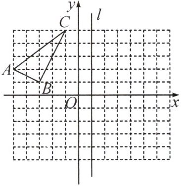 ).(2) 直线 $ l $ 上各点的横坐标都是 $ 1 $,作出 $ \triangle ABC $ 关于直线 $ l $ 对称的 $ \triangle A_2B_2C_2 $,并直接写出点 $ A_2 $, $ B_2 $, $ C_2 $ 的坐标: $ A_2 $(