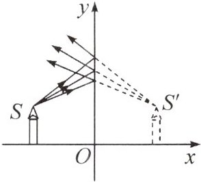 11. 新考向 跨学科 如图,这是蜡烛的平面镜成像原理图,以水平面为 $ x $ 轴,镜面侧面为 $ y $ 轴(镜面厚度忽略不计)建立平面直角坐标系.若某时刻火焰顶端 $ S $ 的坐标是 $ (x - 2,2) $,此时对应的虚像 $ S' $ 的坐标是 $ (3,y) $,则 $ 3x + y = $(