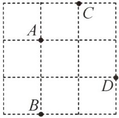 13. (2023·合肥包河区期末)如图,在 $ 3×3 $ 的正方形网格中有四个格点 $ A $, $ B $, $ C $, $ D $,以其中一个点为原点,网格线所在直线为坐标轴,建立平面直角坐标系,使其余三个点中存在两个点关于一条坐标轴对称,则原点可能是(