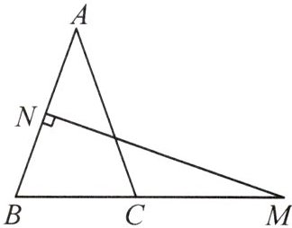 17. 如图,在 $\triangle ABC$ 中,$AB = AC$,$AB$ 的垂直平分线交 $AB$ 于点 $N$,交 $BC$ 的延长线于点 $M$.