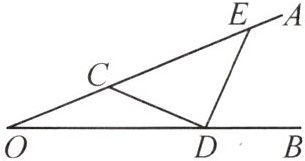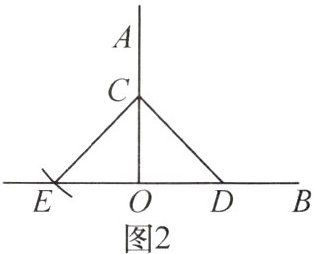 12. 有一个问题:如图 1,已知 $\angle AOB$,只用无刻度的直尺和圆规判断 $\angle AOB$ 是否为直角.小意同学的方法如下:如图 2,在 $OA$,$OB$ 上分别取点 $C$,$D$,以点 $C$ 为圆心,$CD$ 的长为半径画弧,交 $OB$ 的反向延长线于点 $E$,若测量得 $OE = OD$,则 $\angle AOB = 90^{\circ}$.小意同学判断的依据是