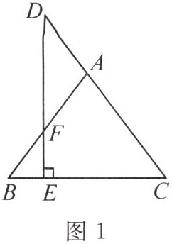 13. 如图1,在△ABC中,AB=AC,D为CA延长线上一点,且DE⊥BC交AB于点F.