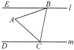 4. (2024·泰安改编)如图,直线$l// m$,等边三角形$ABC$的两个顶点$B$,$C$分别落在直线$l$,$m$上.若$\angle ABE = 21^{\circ}$,则$\angle ACD$的度数是
