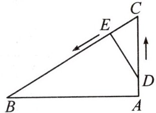 12. 如图,在△ABC中,∠A=90°,∠B=30°,AC=3cm,点D从点A以1cm/s的速度向点C运动,同时点E从点C以2cm/s的速度向点B运动,运动时间为ts.
