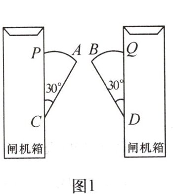 11. 合肥地铁站入口的双翼闸机如图1所示,它的双翼展开时,双翼边缘的端点A,B之间的距离为10cm,双翼的边缘AC=BD=54cm,且与闸机侧立面夹角∠ACP=∠BDQ=30°.