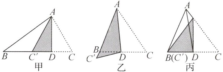 14. 下图是甲、乙、丙三位同学的折纸示意图(折叠后点 C 落到点 $C'$ 处).