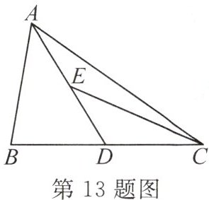 13. (2023·合肥蜀山区期中)如图,已知在△ABC 中,AD 是边 BC 上的中线,E 为 AD 的中点,若△CDE 的面积为 8 $cm^2$,则△ABD 的面积为