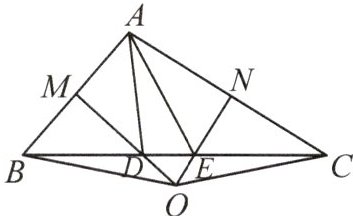 6. (2024·阜阳期中)如图,在△ABC中,边AB的垂直平分线分别交AB,BC于点M,D,边AC的垂直平分线分别交AC,BC于点N,E,MD,NE相交于点O,连接BO,CO.