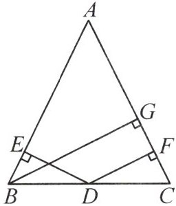 5. 如图,在△ABC 中,AB = AC,DE⊥AB,DF⊥AC,BG⊥AC,垂足分别为 E,F,G. 求证:DE + DF = BG.