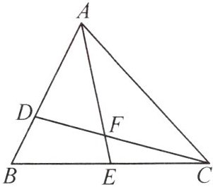 3. 【转化思想】如图,D,E 分别是△ABC 的边 AB,BC 上的点,AD = 2BD,BE = CE,设△ADF 的面积为 S₁,△CEF 的面积为 S₂. 若$ S_{△ABC}=6,$求 S₁ - S₂的值.